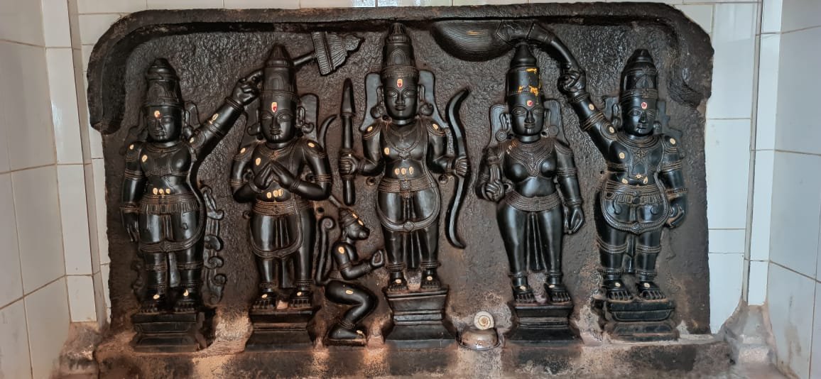 ಇದರ ಕೆತ್ತನೆ ಕೂಡ ವೈಶಿಷ್ಟ್ಯಪೂರ್ಣವಾಗಿರುವುದು.ಶ್ರೀ ರಾಮಚಂದ್ರನ ಎಡಬದಿಯಲ್ಲಿ ಸೀತಾಮಾತೆಯಿದ್ದರೆ ಬಲಬಡಿಯಲ್ಲಿ ಪ್ರಣಾಮ ಭಂಗಿಯಲ್ಲಿರುವ ಲಕ್ಷ್ಮಣನ ಮೂರ್ತಿಯಿದೆ ಮತ್ತು ಎರಡೂ ಬದಿಗಳಲ್ಲಿ ಚಾಮರಗಳಿರುವುದು ವಿಶೇಷ.