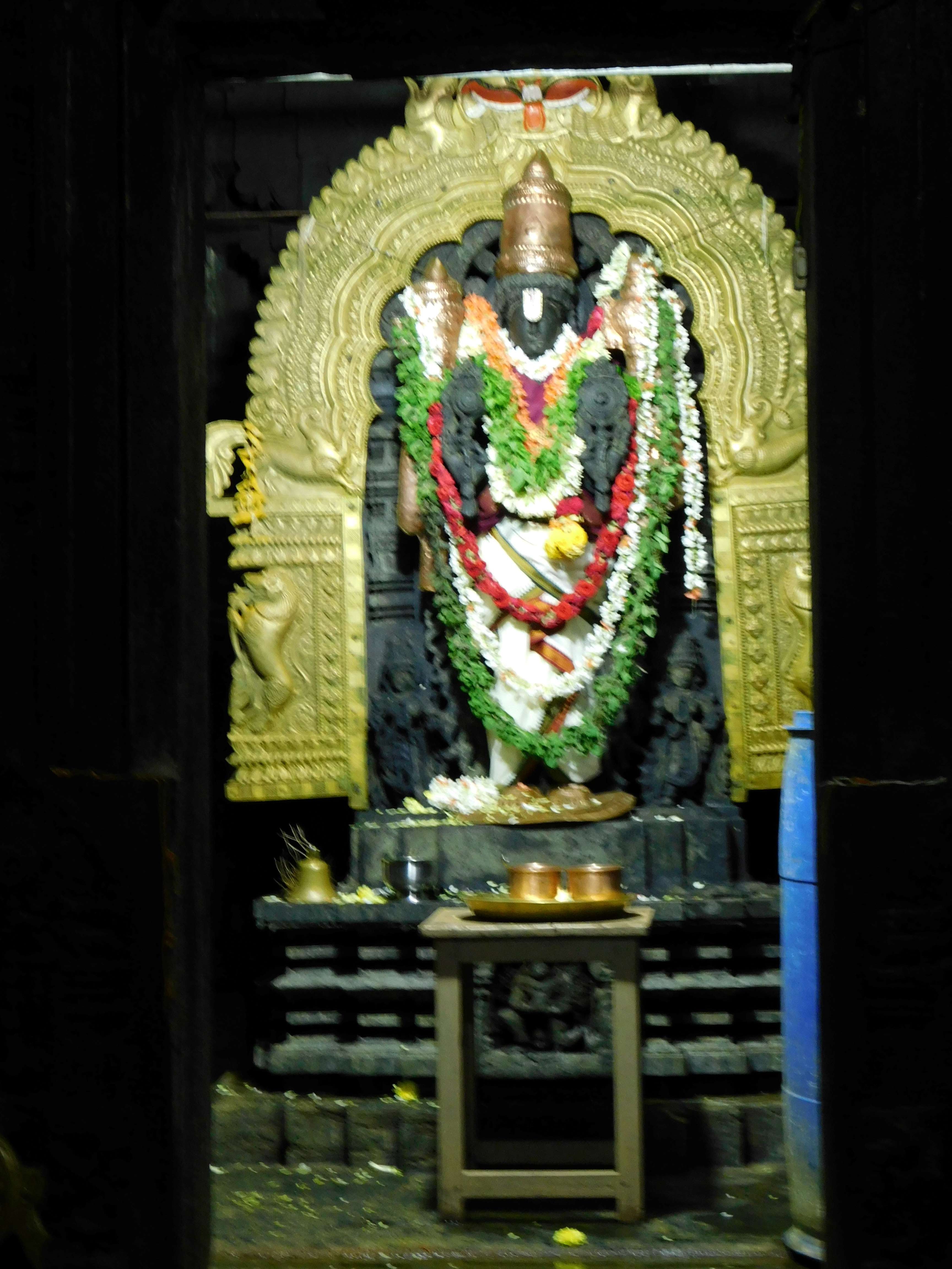 ದೇವಾಲಯದ ಪ್ರಧಾನ ಗರ್ಭಗುಡಿ ಉತ್ತರ ದಲ್ಲಿ ಸುಂದರ ಲಕ್ಶ್ಮೀನಾರಯಣ ಮೂರ್ತಿ ಇದ್ದರೆ, ದಕ್ಷಿಣದಲ್ಲಿ  ವೇಣುಗೋಪಾದ (ಬದಲಾದ ವಿಗ್ರಹ) ಹಾಗೂ ಮತ್ತೊಂದರಲ್ಲಿ ನರಸಿಂಹನ  ಸುಂದರ   ಮೂರ್ತಿಗಳಿವೆ. ಪ್ರಧಾನ ಗರ್ಭಗುಡಿಗೆ ಮಾತ್ರ ಅಂತರಾಳ ಇದ್ದು ಮೂರು ಗರ್ಭಗುಡಿ ಸೇರಿದಂತೆ ಒಂದೇ ನವರಂಗ ಇದೆ.
