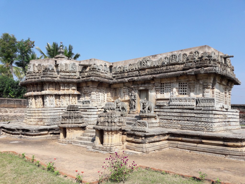 ಹೊಯ್ಸಳರ ದೇವಾಲಯಗಳಲ್ಲಿ ಹೊರಭಿತ್ತಿ ಯ ಮೇರು ಕೆತ್ತೆನೆಗೆ ಸಾಕ್ಷಿ ಈ ದೇವಾಲಯ. ಅಧಿಷ್ಟಾ ನದಲ್ಲಿ ಆನೆ, ಕುದುರೆ ಸವಾರರು, ಪುರಾಣ ಕಥನ ಶಿಲ್ಪಗಳು, ಮಕರ ಹಾಗು ಹಂಸದ ಸಾಲು ಗಳು ಗಮನ ಸೆಳೆಯುತ್ತವೆ. ನಂತರ ಸಾಲಿನಲ್ಲಿ ಕಾಣುವ ಶಿಲಾ ಕೆತ್ತೆನೆಗಳು ಹೊಯ್ಸಳರ ಕಲಾ ವೈಭವದ ಪರಾಕಷ್ಠೆಯನ್ನು ನೆನಪಿಸುತ್ತದೆ. ಇಲ್ಲಿ ೨೨ ಭುಜದ ನರ್ತಿಸುವ ದುರ್ಗಾದ ಕೆತ್ತೆನೆ ಅದ್ಭುತ.ಉಳಿದಂತೆ ಕಾಳಿಂಗ ಮರ್ಧನ, ನಟರಾಜ ಅಂಧಕಾಸುರ ಸಂಹಾರ, ಗಜಾಸುರ ಮರ್ಧನ ಶಿವ, ಕಾಲಭೈರವ, ವೇಣು ಗೋಪಾಲ, ಲಕ್ಷ್ಮೀನಾರಾಯಣ,ಶ್ರೀಲಕ್ಷ್ಮೀನರ ಸಿಂಹ,ಸರಸ್ವತಿ, ಬ್ರಹ್ಮ, ಯೋಗ ನಾರಾಯಣ, ನರ್ತಿಸುವ ಹದಿ ನಾರು ಭುಜದ ಶಿವ, ಅಷ್ಟಭುಜದ ವಿಷ್ಣು ಗಮನ ಸೆಳೆಯುತ್ತದೆ.