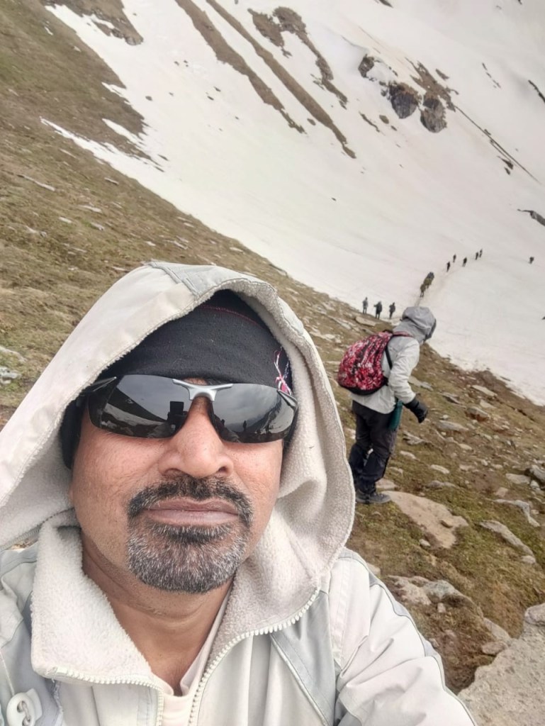 ಸುಮಾರು ೬-೭ ತಾಸು, ಅತೀ ದುರ್ಗಮ ಪರ್ವತವನ್ನು ಏರಿ, ಕಡಿದಾದ ಪರ್ವತದ ತುದಿಯಲ್ಲಿ ನಖ- ಶಿಖಾಂತ ನಡುಗುತ್ತಾ ಸ್ವಲ್ಪ ದೂರ ನಡೆದು, ಮಧ್ಯಾಹ್ನ ಸುಮಾರು ೧೧ ಗಂಟೆಗೆ ತುದಿಯಲ್ಲಿರುವ ಸ್ವಲ್ಪ ಸಮತಟ್ಟಾದ ಜಾಗಕ್ಕೆ ಬಂದರೆ…. ಅದೇ SAR PASS…! ದೂರದಲ್ಲಿ ಹಿಮದಿಂದ ತುಂಬಿದ ಕೊಳ…!