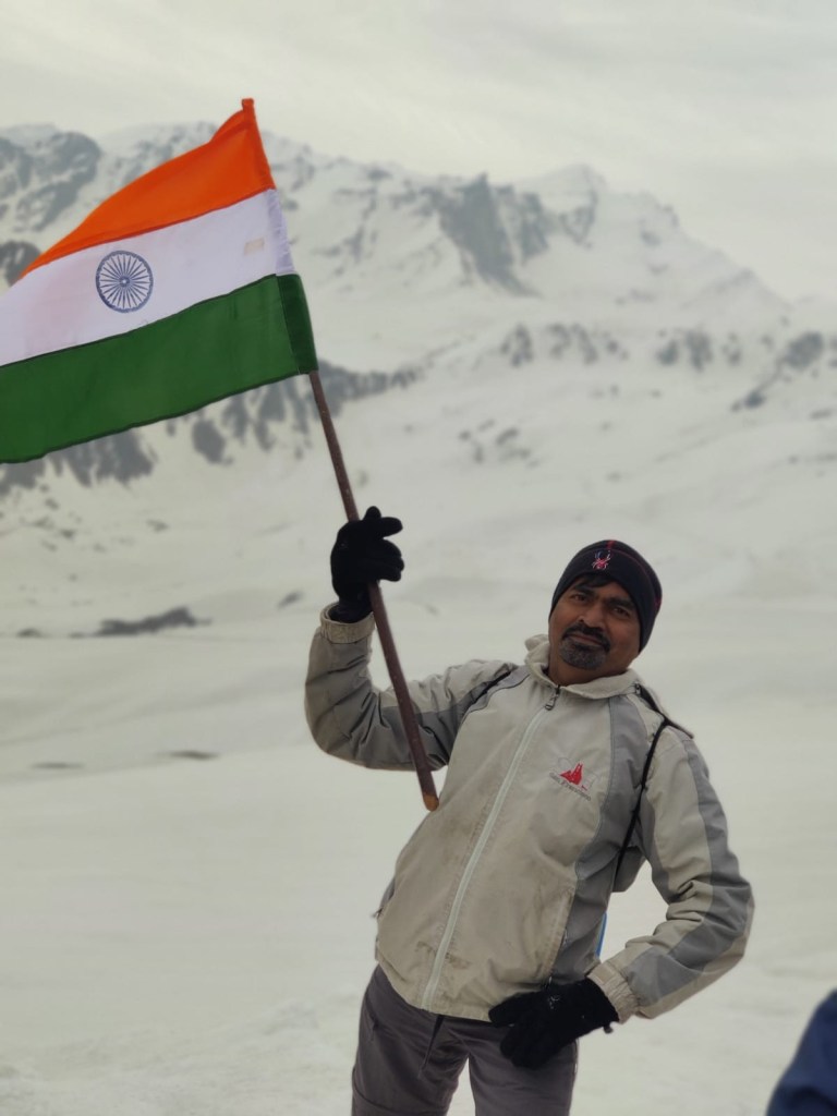 ಎಂಥ ವಿಹಂಗಮ ದೃಶ್ಯ..! ಸುತ್ತಲೂ ಕಣ್ಣು ಹಾಯಿಸಿದಷ್ಟೂ ದೂರ ಬರೀ ಹಿಮ. ಕೆಲವು ಪರ್ವತಗಳು ನಮಗಿಂತ ಮೇಲಿದ್ದರೆ, ಕೆಲವು ನಮಗಿಂತ ಕೆಳಗೆ…!”ಓಹೋ ಹಿಮಾಲಯ…” ಅಂತ ಕೆಲವರು ಹಾಡಿದರೆ,ಆಜ್ ಮೆ ಊಪರ್ ಆಸಮಾ ನೀಚೆ…! ಅಂತ ಕೆಲವರ ಹಿಂದಿ ಹಾಡು…! ಕೆಲವರು ಭಾರತದ ರಾಷ್ಟ್ರ ಧ್ವಜದ ಜೊತೆ ಫೋಟೋ, ಇನ್ನೂ ಕೆಲವರದು ನಮ್ಮ ಕನ್ನಡದ ಬಾವುಟದ ಜೊತೆ…ವಾಹ್…!!! ವಯಸ್ಸನ್ನು ಮರೆತು ಎಲ್ಲರೂ ಖುಷಿಯಿಂದ ಕುಣಿದು ಕುಪ್ಪಳಿಸಿದ್ದು ಮರೆಯಲಾಗದ ಕ್ಷಣ…!