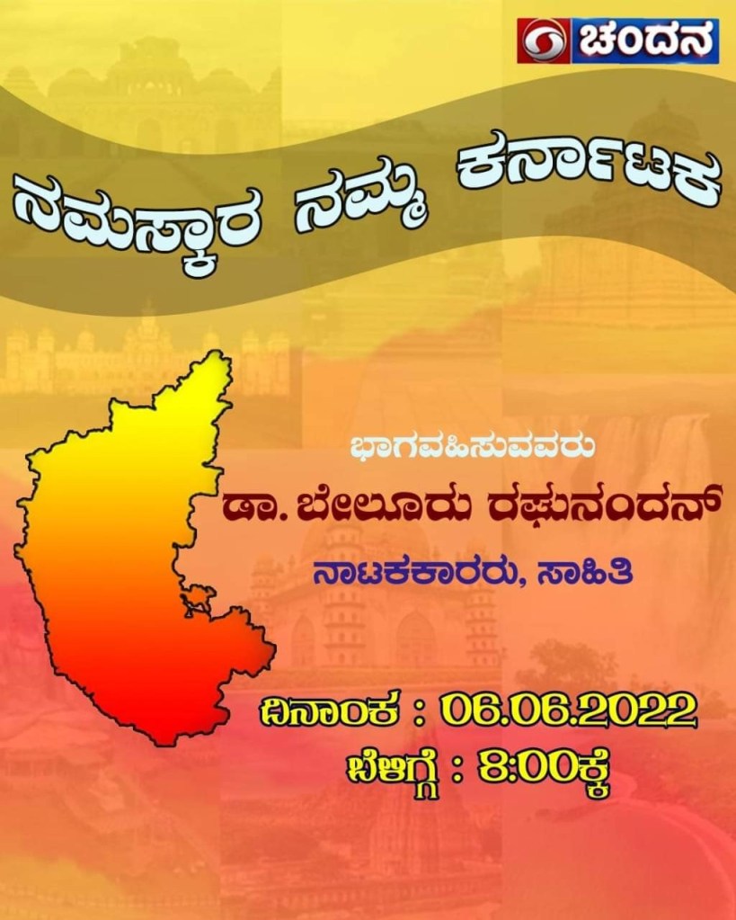 ಬೆಂಗಳೂರಿನ ವಿಜಯನಗರ ಸರ್ಕಾರಿ ಪ್ರಥಮ ದರ್ಜೆ ಕಾಲೇಜಿನಲ್ಲಿ ಸಹಾಯಕ ಪ್ರಾಧ್ಯಾಪಕ ರಾಗಿರುವ ಡಾ. ಬೇಲೂರು ರಘುನಂದನ್ ಅವರದು ಬಹುಮುಖ ಪ್ರತಿಭೆ. ಲೇಖಕರಾಗಿ, ಕವಿಗಳಾಗಿ, ಅಂಕಣಕಾರರಾಗಿ, ವಿಮರ್ಶಕ ರಾಗಿ, ನಾಟಕಕಾರರಾಗಿ, ನಿರ್ದೇಶಕ ರಾಗಿ, ರಂಗ ಕಲಾವಿದರಾಗಿ, ಸಾವಿರಾರು ವಿದ್ಯಾರ್ಥಿಗಳ ಅಚ್ಚು-ಮೆಚ್ಚಿನ ಗುರುಗಳಾಗಿ ಖ್ಯಾತನಾಮರಾದ ಡಾ.ಬೇಲೂರು ರಘುನಂದ ನ್ ನಾಡಿನ ಜನತೆಗೆ ಚಿರಪರಿಚಿತರು. ೬ ನೇ ಜೂನ್ 2022 ರಂದು ಚಂದನ ವಾಹಿನಿಯ ನಮಸ್ತೆ ನಮ್ಮ ಕರ್ನಾಟಕ ಕಾರ್ಯಕ್ರಮದಲ್ಲಿ ಭಾಗವಹಿಸಿ ತಮ್ಮ ಸಾಹಿತ್ಯ, ಅಧ್ಯಾಪನ, ರಂಗಭೂಮಿ ಚಟುವಟಿಕೆಗಳನ್ನು ಕುರಿತು ತಮ್ಮ ಮನದಾಳದ ಭಾವನೆಗಳನ್ನು, ವಿಚಾರ ಧಾರೆಗಳನ್ನು ವೀಕ್ಷಕರ ಮುಂದೆ ಬಿಚ್ಚಿಟ್ಟ ರು. ಅವರ ಸುದೀರ್ಘ ಮಾತುಗಳನ್ನು ಕೇಳಿದ ನನಗೆ ಆ ಕಾರ್ಯಕ್ರಮದ ಬಗ್ಗೆ ಒಂದೆರಡು ನನ್ನ ಅನಿಸಿಕೆಗಳನ್ನು ಹಂಚಿಕೊಳ್ಳಬೇಕೆನಿಸಿತು. ಹಾಗಾಗಿ ಆ ಕಾರ್ಯಕ್ರಮದ ಒಂದು ಪುಟ್ಟ ವರದಿ ನಿಮ್ಮ ಮುಂದಿರಿಸುತ್ತಿದ್ದೇನೆ.