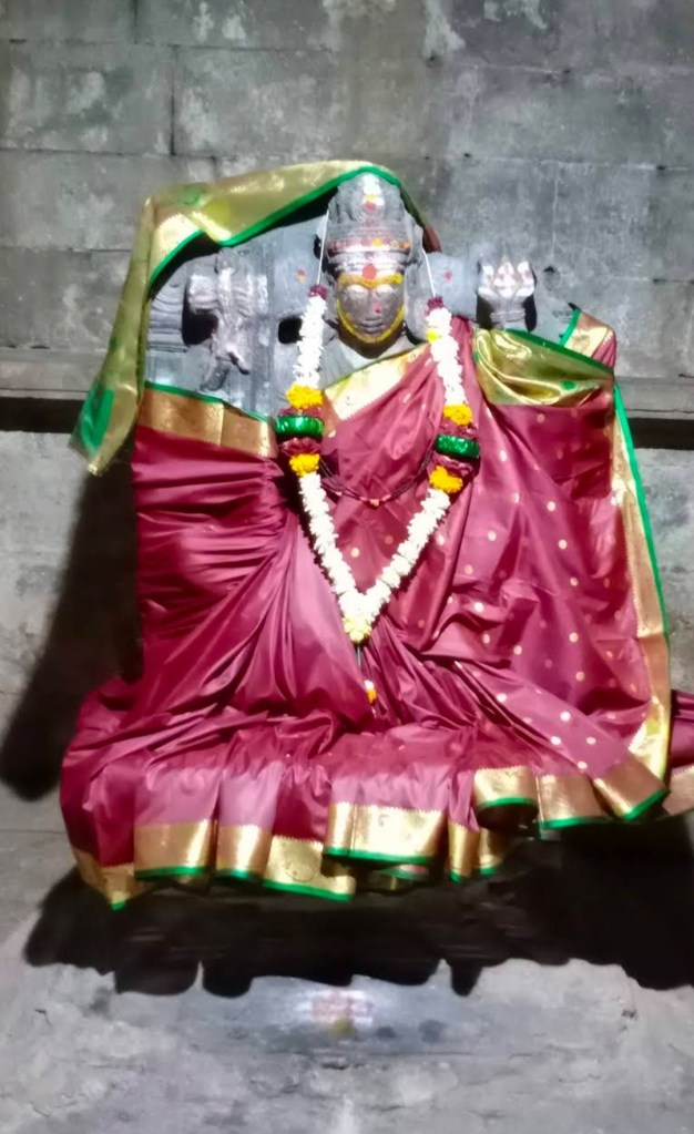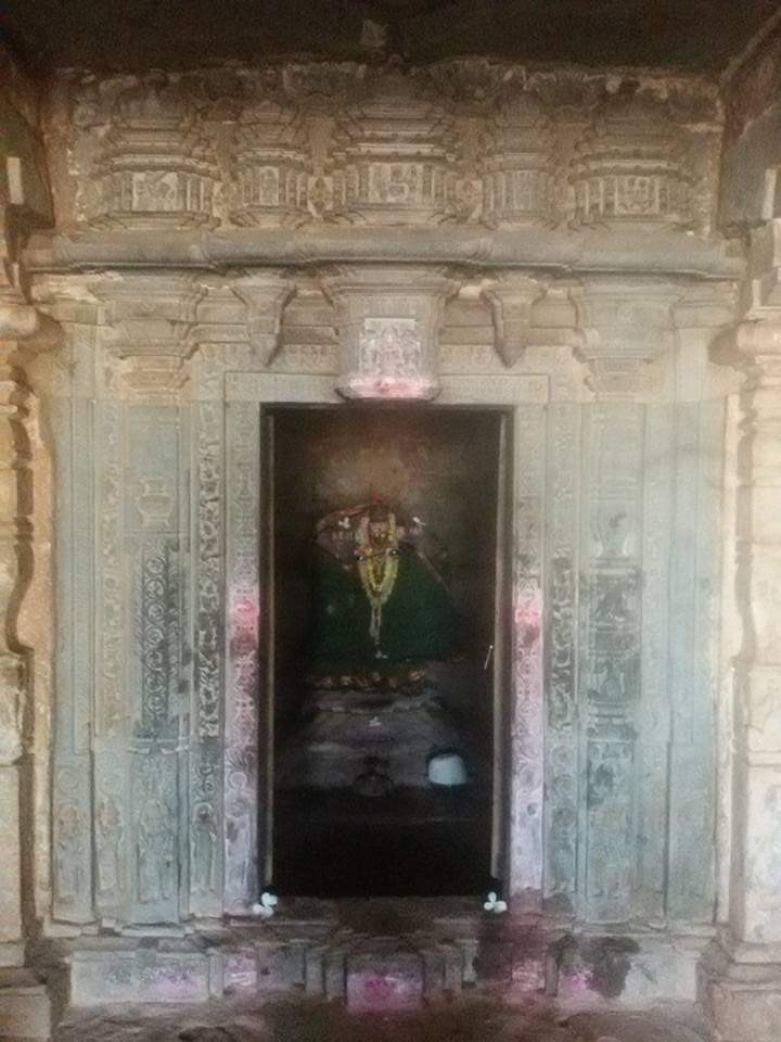 ದೇವಾಲಯದ ಗರ್ಭಗುಡಿಯ ಬಾಗಿಲುವಾಡ ಗಳು ಸುಂದರವಾಗಿ ಪಂಚಶಾಖೆಯಿಂದ ಅಲಂಕೄತಗೊಂಡಿದ್ದು ಲಲಾಟದಲ್ಲಿ ಗಜಲಕ್ಷ್ಮೀಯ ಕೆತ್ತನೆ ಇದೆ. ಇದರ ಮೇಲಿನ ಭಾಗದ ತೋರಣದಲ್ಲಿ ಐದು ಶಿಖರಗಳು ಇದೆ. ಇನ್ನೊಂದರಲ್ಲಿ ತ್ರೈಪುರುಷರಾದ ಬ್ರಹ್ಮ, ವಿಷ್ಣು ಹಾಗೂ ಮಹೇಶ್ವರರ ಕೆತ್ತನೆ ಇದ್ದು ಜೊತೆಯಲ್ಲಿ ಗಣಪತಿಯ ಕೆತ್ತನೆ ಸಹ ಇದೆ.