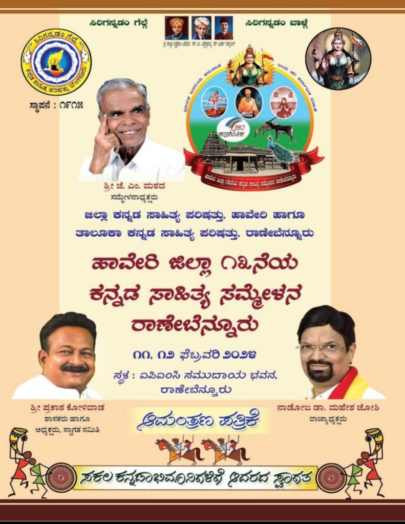 ‘ಮತದಾರರೇ ದೇಶೋದ್ಧಾರಕ್ಕೆ ಮೂಲಾ ಧಾರ’, ‘ಪುಸ್ತಕಗಳ ಓದುಗ ವಾಗ್ಮಿಯಾಗು ವನು’, ‘ದುಡಿ ಸುಖಪಡಿ’,’ಜೀವನ ದರ್ಶನ’, ‘ನಾವೆಲ್ಲರೂ ಒಂದಾಗಿ ಬಾಳೋಣ ಬನ್ನಿ – ನಾವೆಂದು ಹೊಸ ನಾಡ ಕಟ್ಟೋಣ ಬನ್ನಿ’, ‘ಸುಂದರವಾದ ಬದುಕು-ವಿವೇಕದ ಕೊಡುಗೆ’, ‘ಸಮುದಾಯಕ್ಕೆ ಉಪಯುಕ್ತ ವಾದು ದನ್ನು ಮಾಡಿ – ಸಾರ್ಥಕತೆ ಹೊಂದು ವುದಕ್ಕಿಂತ ಅಧಿಕ ಭಾಗ್ಯವಿಲ್ಲ’, ‘ಜ್ಞಾನದ ಬಲದಿಂದ ಅಜ್ಞಾನದ ಕೇಡು ನೋಡಯ್ಯ’, ‘ಮತದಾನಕ್ಕಾಗಿ ಪ್ರತಿಜ್ಞೆಗೈಯ್ಯೋಣ’ ಮುಂತಾದ ಜನಜಾಗೃತಿ ಕರಪತ್ರಗಳನ್ನು ಹೊರಡಿಸಿರುವ ಶ್ರೀ ಜೆ.ಎಮ್. ಮಠದ ಗುರು ಮಹನೀಯರ ಸಾಂಗತ್ಯದಲ್ಲಿ ೧೧-೧೨ ಪೆಬ್ರವರಿ ೨೦೨೪ರ ರವಿವಾರ – ಸೋಮವಾರ ದಿನ ರಾಣೇಬೆನ್ನೂರಿನ ಎ.ಪಿ.ಎಮ್.ಸಿ ಸಮುದಾಯ ಭವನದಲ್ಲಿ ಆಯೋಜನೆಯಾಗಿರುವ ಹಾವೇರಿ ಜಿಲ್ಲಾ ೧೩ ನೇ ಕನ್ನಡ ಸಾಹಿತ್ಯ ಸಮ್ಮೇಳನವು ಕನ್ನಡದ ಸಾಕ್ಷಿ ಪ್ರಜ್ಞೆಯಾಗಲಿ. ಜೈ ಕನ್ನಡ, ಜೈ ಕರ್ನಾಟಕ.