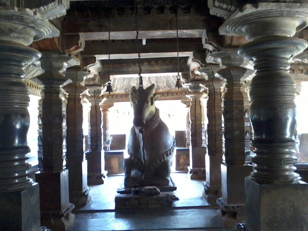 ನಾಟ್ಯಮಂಟಪದ ಎದುರು ೭.೫ ಅಡಿ ಎತ್ತರದ ಬೃಹತ್ ನಂದಿ ಇದೆ. ಇದು ಹಾನಗಲ್ ಕದಂಬರ ಕಾಲಕ್ಕೆ ಸೇರಿದ್ದಾಗಿದೆ. ಈ ನಂದಿಯು ಎಡಗಣ್ಣಿ ನಿಂದ ಎದುರಿಗೆ ಶಿವನನ್ನು ಬಲಗಣ್ಣಿನಿಂದ ಪಕ್ಕ ದಲ್ಲಿರುವ ಪಾರ್ವತಿ ಗುಡಿಯಲ್ಲಿರುವ ಪಾರ್ವತಿ ಯನ್ನು ನೋಡುತ್ತಿದೆ. ನಂದಿಯನ್ನು ಅತ್ಯಂತ ನುಣುಪಾದ ಬಳಪದ ಕಲ್ಲಿನಿಂದ ಮಾಡಲಾಗಿದೆ.