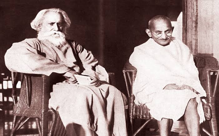 ಟ್ಯಾಗೋರರ ವಿಚಾರಗಳು ಮತ್ತು ಬರಹಗಳಿಂದ ಮಹಾತ್ಮಾಗಾಂಧಿ ಪ್ರಭಾವಿತರಾಗಿದ್ದರು. ತಮ್ಮ ಅಹಿಂಸಾ ಚಳುವಳಿಗೆ ಟ್ಯಾಗೋರರ ತತ್ವಗಳನ್ನು ಅವರು ಅನುಸರಿಸಿದ್ದರು.