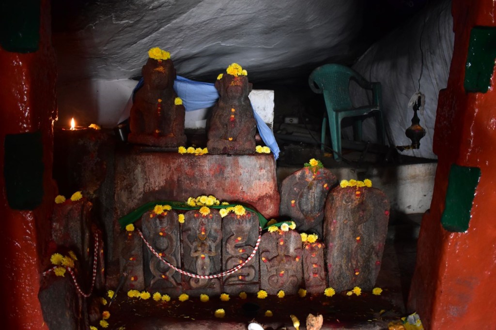 ನವರಂಗ ಭಾಗದ ಸಹ ಬಂಡೆಯ ಒಳಭಾಗದಲ್ಲಿ ಇದ್ದು ತೆವಳಿಕೊಂಡು ಹೋಗಬೇಕು. ಅರಂಭದಲ್ಲಿ ಸಿಗುವ ಅಂಕಣ ಭಾಗ ಹುಲುಕುಡಿ ನಾಡಪ್ರಭು ಗಳ ಕಾಲದಲ್ಲಿ ಸೇರ್ಪಡೆಗೊಂಡಿದ್ದು ಅವರ ಕಾಲ ದಲ್ಲಿ ನಿರ್ಮಾಣಗೊಂಡ ನಾಲ್ಕು ಕಂಭಗಳಿವೆ. ಅಂಕಣದಲ್ಲಿ ಸುರಂಗ ಮಾರ್ಗವಿದ್ದು, ಇದು ಬೆಟ್ಟ ದ ಕೆಳಗಿನ ಮಾಡೇಶ್ವರದಲ್ಲಿನ ಮುಕ್ಕಣ್ಣೇಶ್ವರ ದೇವಾಲಯಕ್ಕೆ ಹೋಗುತ್ತದೆ ಎನ್ನಲಾಗಿದೆ. ಅಂಕಣದಲ್ಲಿ ಪುರಾತನವಾದ ಎರಡು ನಂದಿ ಶಿಲ್ಪಗಳಿದ್ದು, ನಾಗ ಶಿಲ್ಪಗಳು ಮತ್ತು ಗಣಪತಿ ನಂತರ ಸೇರ್ಪಡೆ. ಕಂಭಗಳು ಸರಳವಾ ಗಿದ್ದು ಅಂಕಣದ ಪ್ರವೇಶದ ಹೊಸ್ತಿಲಿನಲ್ಲಿ ಭಕ್ತ ಕೈ ಮುಗಿಯುತ್ತಿರುವ ಕೆತ್ತನೆ ಇದೆ.