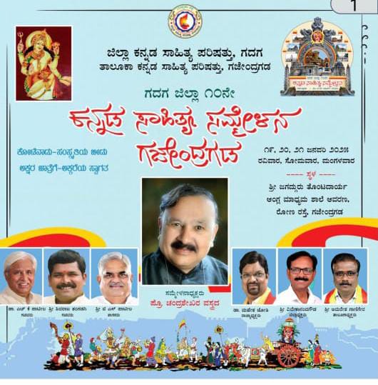ಕೋಟೆನಾಡು ಗಜೇಂದ್ರಗಡದಲ್ಲಿ ೧೦ ನೇ ಕಸಾಸ ನಿಮಿತ್ತ ವಿಷೇಶ ಚಿತ್ರಕಲಾ ಪ್ರದರ್ಶನ ಶ್ರೀ ಪುಂಡಲೀಕ ಕಲ್ಲಿಗನೂರ ಅವರ ‘ವಚನ ಚಿತ್ರ ಸಂಗಮ’: ಶರಣರ ವಚನಗಳಿಗೆ ಚಿತ್ರವ್ಯಾಖ್ಯೆ, ಹಾಗೂ ‘ಗಜೇಂದ್ರಗಡ ಐತಿಹಾಸಿಕ ಪರಿಸರ’ ಕುರಿತ ಛಾಯಾ ಚಿತ್ರಗಳ ಪ್ರದರ್ಶನ, ಜೆ. ಎನ್. ಕಲಾ ಶಾಲೆ ಹಾಗೂ ವಿಜಯ ಕಲಾ ಮಹಾವಿದ್ಯಾಲಯ ಗದಗ ಇವರಿಂದ ವಿಶೇಷ ಚಿತ್ರಕಲಾ ಪ್ರದರ್ಶನ ಏರ್ಪಡಿಸಲಾಗಿದೆ. ಈ ಸಂದರ್ಭದಲ್ಲಿ “ಅಂತರಗಂಗೆ” ಎಂಬ ಸ್ಮರಣ ಸಂಚಿಕೆಯನ್ನು ಹೊರತರಲಾಗುತ್ತಿದೆ.ಜಿಲ್ಲಾ ಕ.ಸಾ. ಪ. ಅಧ್ಯಕ್ಷರಾದ ವಿವೇಕಾನಂದಗೌಡ ಪಾಟೀಲ ಹಾಗೂ ಶಾಸಕರು ಹಾಗೂ ಸಮ್ಮೇಳನವು ಸ್ವಾಗತ ಸಮಿತಿ ಅಧ್ಯಕ್ಷರಾದ ಜೆ. ಎಸ್.ಪಾಟೀಲರ ನೇತೃತ್ವ ದಲ್ಲಿ ಜರುಗಲಿದೆ.ಬನ್ನಿ ಎಲ್ಲಕಡೆಗೆ ಪಸರಿಸೋಣ, ಎಲ್ಲರೂ ಕನ್ನಡ ಸಾಹಿತ್ಯದ ಘಮಲನ್ನು ಆನಂದಿಸೋಣ. ಜಿಮಸಾಪ ಅಧ್ಯಕ್ಷರು, ಲೇಖಕರು ಸನ್ಮಿತ್ರರಾದ ಡಾ. ರಾಜೇಂದ್ರ ಎಸ್. ಗಡಾದರು ಬರೆದ ಗದಗ ಜಿಲ್ಲೆಯಲ್ಲಿ ೧೦ ಕಸಾಸಗಳು ನಡೆದು ದಾರಿ ಸತ್ವಯುತ ಲೇಖದ ಮಹತ್ವವನ್ನು ಸ್ಮರಿಸದೆ ಇರಲಾರೆ.